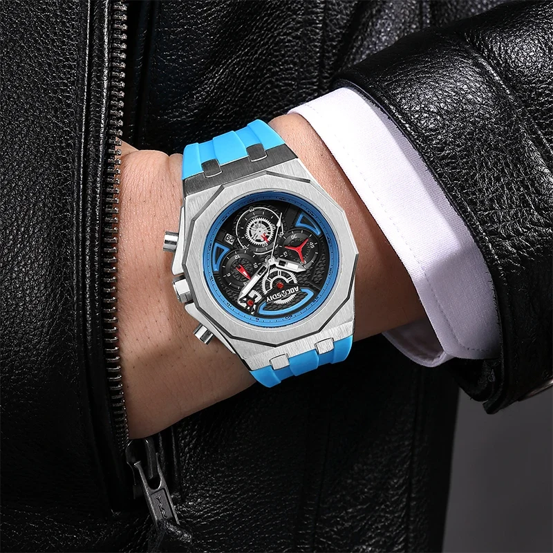 বিস্তারিত: Material: The strap is made of silicone, suitable for various occasions. Features: The watch has chronograph, calendar, glow-in-the-dark and waterproof functions. Watch 3BAR can be used for hand washing without hot/warm water, can not shower, bath, swimming, etc. About color: Due to different computer monitors and actual shooting brightness and other reasons, color differences are inevitable.